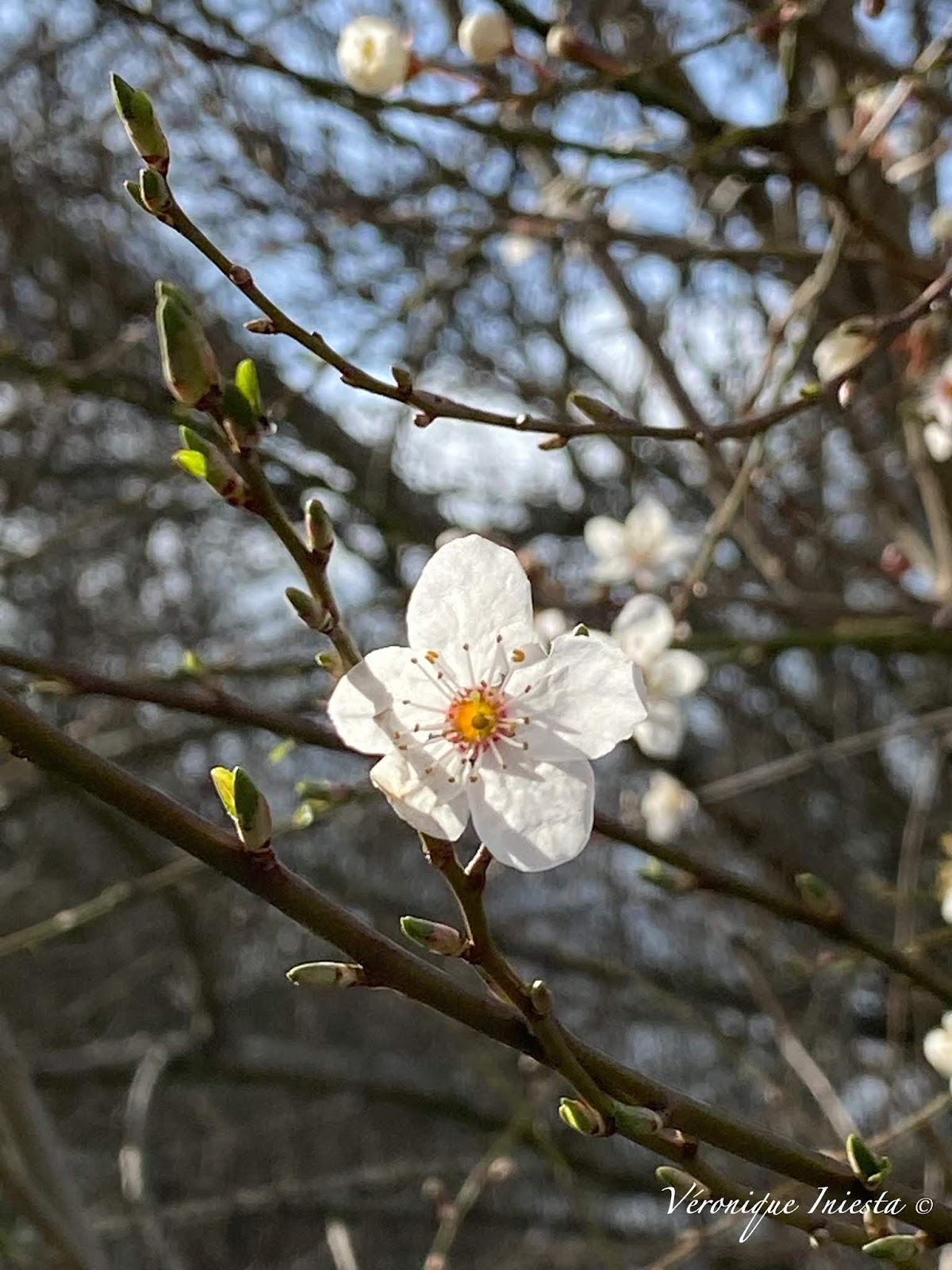 Près de l’église, j’ai trouvé un lieu que j’ai bien examiné et qui m’a beaucoup intrigué. Sur la façade, de nombreuses décorations témoignent d’un esprit libre et créatif, ce qui a toujours sur moi une forte attractivité. En regardant les fenêtres, j’ai aperçu le dos d’assiettes et suspendu là, une robe blanche très ancienne. Peut-être qu’il y a aussi des poupées de porcelaine et toutes sortes de choses merveilleuses et anciennes, mais ce n’est que ce que j’imagine. Par discrétion je n'ai pas photographié cette fenêtre, mais au-dessus j'ai capturé un joli bateau à voile. J’aurais aimé alors qu’une femme sorte et m’entraîne dans la visite d’un atelier étrange où les souvenirs des années 1900 seraient réparés et raccommodés avec une machine à coudre magique à pédalier. Rien ne s’est produit de tel, aussi j’ai gravi la petite route en quête d’autres trouvailles. Les fleurs tapissent les bas des murs, un château dont la porte s’encadre de colonnes de marbre roses et de deux cariatides m’impressionne, puis un tapis de primevère, un beau puits, et le tour du village est bouclé sans me donner de réponse à l’énigme de l’atelier aux poupées… Je regarde une fois encore le village de loin qui disparait après un tournant. J’aimerais que ce samedi ne finisse pas et rester dans la douceur de ces beaux paysages, mais il faut rentrer travailler et reprendre le stylet et les pinceaux !